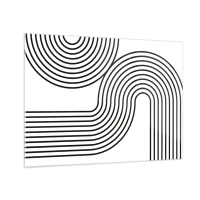 Glastavla - Bild på glas - Svartvit grafik med böjda parallella linjer - 70x50cm - På en kurva - Modern väggdekoration för vardagsrum och sovrum ARTTOR
