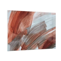 Glastavla - Bild på glas - Dynamiska penseldrag i varma höstfärger och svala blå nyanser. - 70x50cm - Höst- och blåsig abstraktion - Modern väggdekoration för vardagsrum och sovrum ARTTOR