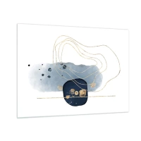 Glastavla - Bild på glas - En abstrakt komposition i nyanser av marinblått och guld - 70x50cm - Gulddamm - Modern väggdekoration för vardagsrum och sovrum ARTTOR