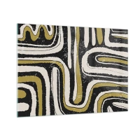 Glastavla - Bild på glas - Abstrakta mönster i svart, vitt och guld - 70x50cm - Komposition: stråk och gränder - Modern väggdekoration för vardagsrum och sovrum ARTTOR