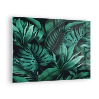 Glastavla - Bild på glas - Frodiga gröna blad i en tropisk komposition - 70x50cm - Tropiska grönskans djup - Modern väggdekoration för vardagsrum och sovrum ARTTOR