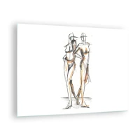 Glastavla - Bild på glas - Konstnärlig skiss av två kvinnor i minimalistisk stil. - 70x50cm - Charmens studie - Modern väggdekoration för vardagsrum och sovrum ARTTOR