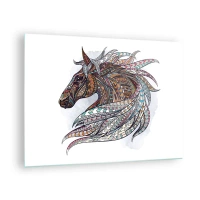 Glastavla - Bild på glas - Färgglad häst i konstnärlig stil med geometriska mönster - 70x50cm - Keltiska kämpens häst - Modern väggdekoration för vardagsrum och sovrum ARTTOR