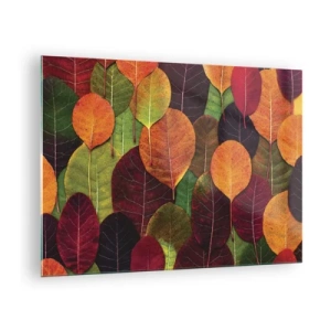 Glastavla - Bild på glas - Färgglada höstlöv i ett konstnärligt arrangemang - 70x50cm - Höstmosaik - Modern väggdekoration för vardagsrum och sovrum ARTTOR