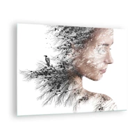 Glastavla - Bild på glas - Porträtt av en kvinna med grenar i bakgrunden - 70x50cm - Skogens ande - Modern väggdekoration för vardagsrum och sovrum ARTTOR