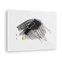 Glastavla - Bild på glas - Abstrakt komposition av svart och guld på en vit bakgrund - 70x50cm - I svart och guld - Modern väggdekoration för vardagsrum och sovrum ARTTOR