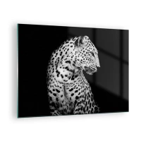 Glastavla - Bild på glas - En leopard i svartvitt ljus mot ett fönster - 70x50cm - Perfekt höger profil! - Modern väggdekoration för vardagsrum och sovrum ARTTOR