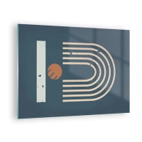 Glastavla - Bild på glas - Geometrisk retrokomposition på en mörk bakgrund - 70x50cm - Geometri mot mörkblå bakgrund - Modern väggdekoration för vardagsrum och sovrum ARTTOR