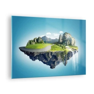 Glastavla - Bild på glas - En flytande ö med berg, ett vattenfall och grönska - 70x50cm - Fantastisk ö - Modern väggdekoration för vardagsrum och sovrum ARTTOR