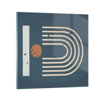 Glastavla - Bild på glas - Geometri mot mörkblå bakgrund - 30x30 cm