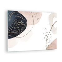 Glastavla - Bild på glas - Abstrakta former med gulddetaljer - 70x50cm - Allt flyter - Modern väggdekoration för vardagsrum och sovrum ARTTOR