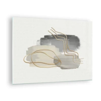 Glastavla - Bild på glas - Abstraktion med grå fläckar och guldlinjer på en ljus bakgrund - 70x50cm - Varaktighet och rörelse - Modern väggdekoration för vardagsrum och sovrum ARTTOR