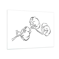 Glastavla - Bild på glas - En minimalistisk skiss av en bomullskvist i svarta linjer. - 70x50cm - Bomullsdun - Modern väggdekoration för vardagsrum och sovrum ARTTOR