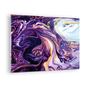 Glastavla - Bild på glas - En abstrakt komposition med en blandning av lila, blå och rosa färger. - 70x50cm - Yin och yang - Modern väggdekoration för vardagsrum och sovrum ARTTOR