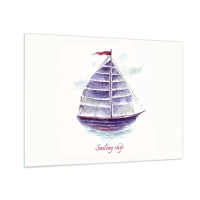 Glastavla - Bild på glas - Akvarell segelfartyg med inskriptionen Segelfartyg - 70x50cm - Fulla seglar och lugnt vatten - Modern väggdekoration för vardagsrum och sovrum ARTTOR