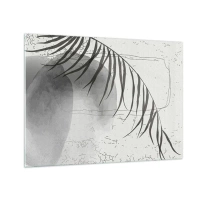 Glastavla - Bild på glas - Svartvit palmbladsskugggrafik - 70x50cm - Den subtila exotismen i naturen - Modern väggdekoration för vardagsrum och sovrum ARTTOR