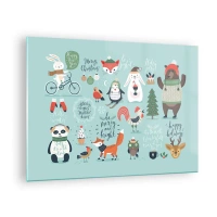 Glastavla - Bild på glas - Vinterskog med söta djur i illustration - 70x50cm - Sagojul i skogen - Modern väggdekoration för vardagsrum och sovrum ARTTOR