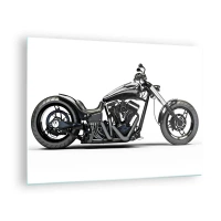 Glastavla - Bild på glas - En kromad motorcykel i modern stil på vit bakgrund - 70x50cm - Samlarens dröm - Modern väggdekoration för vardagsrum och sovrum ARTTOR
