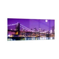 Glastavla - Bild på glas - Storstadens ljus i violett - 100x40 cm