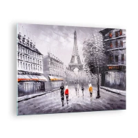 Glastavla - Bild på glas - En parisisk promenad - 70x50cm - Promenad i Paris - Modern väggdekoration för vardagsrum och sovrum ARTTOR