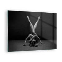 Glastavla - Bild på glas - Kvinnlig nakenhet i en geometrisk kroppskomposition - 70x50cm - Nakenhetens geometri - Modern väggdekoration för vardagsrum och sovrum ARTTOR