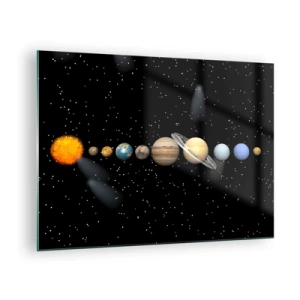 Glastavla - Bild på glas - Solsystemet mot bakgrund av stjärnor i rymden - 70x50cm - Och planeterna blir galna... - Modern väggdekoration för vardagsrum och sovrum ARTTOR