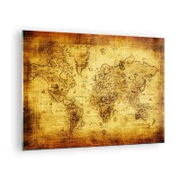 Glastavla - Bild på glas - Gammal vintage världskarta - 70x50cm - Världen är konstig - Modern väggdekoration för vardagsrum och sovrum ARTTOR