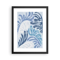 Affisch i svart ram - Abstrakt komposition av löv i nyanser av blått - 50x70cm - Blåa ormbunkar - Modern väggdekoration för vardagsrum och sovrum ARTTOR