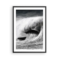 Affisch i svart ram - En kraftfull våg i grå nyanser - 50x70cm - Havets ilska - Modern väggdekoration för vardagsrum och sovrum ARTTOR