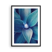 Affisch i svart ram - Detalj av en stor blomma i nyanser av blått - 50x70cm - Blått från himlen - Modern väggdekoration för vardagsrum och sovrum ARTTOR