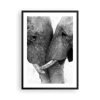 Affisch i svart ram - Närbild av två elefanter i svartvitt - 50x70cm - Hjärtlig bekännelse - Modern väggdekoration för vardagsrum och sovrum ARTTOR