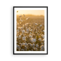 Affisch i svart ram - Ett bomullsfält i det varma ljuset från den nedgående solen - 50x70cm - Fluffigt fält - Modern väggdekoration för vardagsrum och sovrum ARTTOR