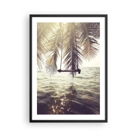 Affisch i svart ram - En gunga under palmerna vid det lugna havet - 50x70cm - Gunga i molnen hur mycket du vill - Modern väggdekoration för vardagsrum och sovrum ARTTOR