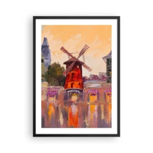 Affisch i svart ram - En målerisk tolkning av den berömda väderkvarnen mot stadens bakgrund - 50x70cm - Ikoner av Paris – Moulin Rouge - Modern väggdekoration för vardagsrum och sovrum ARTTOR