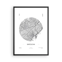Affisch i svart ram - En minimalistisk karta över Barcelona i svartvitt. - 50x70cm - Barcelonas anatomi - Modern väggdekoration för vardagsrum och sovrum ARTTOR