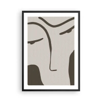 Affisch i svart ram - Minimalistiskt ansiktsporträtt - 50x70cm - Som från en målning av Modigliani - Modern väggdekoration för vardagsrum och sovrum ARTTOR