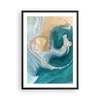 Affisch i svart ram - Abstrakt guld- och turkosmotiv i flytande former - 50x70cm - Guld- och turkosvirvel - Modern väggdekoration för vardagsrum och sovrum ARTTOR