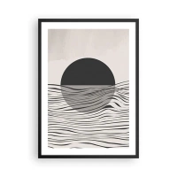 Affisch i svart ram - Abstrakt solnedgång med våglinjer - 50x70cm - Halvdan komposition - Modern väggdekoration för vardagsrum och sovrum ARTTOR