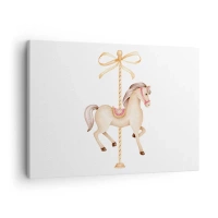 Canvastavla - Bild på duk - En karusellhäst i pastellrosa nyanser - 70x50cm - Han gav sig iväg med en hov - Modern väggdekoration för vardagsrum och sovrum ARTTOR