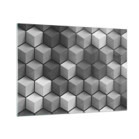 Glastavla - Bild på glas - Geometriska kuber i grå nyanser - 70x50cm - Kubistiskt pussel - Modern väggdekoration för vardagsrum och sovrum ARTTOR