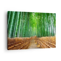 Canvastavla - Bild på duk - En stig i en tät bambuskog - 70x50cm - Asiatiska kulturens essäns - Modern väggdekoration för vardagsrum och sovrum ARTTOR