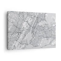 Canvastavla - Bild på duk - En stadskarta i minimalistisk stil mot en grå bakgrund - 70x50cm - Metropolens anatomi - Modern väggdekoration för vardagsrum och sovrum ARTTOR