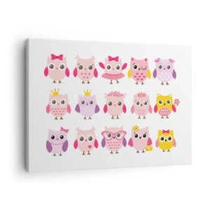 Canvastavla - Bild på duk - Söta ugglor i pastellfärger - 70x50cm - Den ena sötare än den andra - Modern väggdekoration för vardagsrum och sovrum ARTTOR