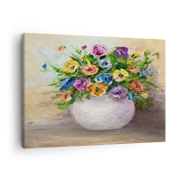 Canvastavla - Bild på duk - En färgglad blombukett i en vit vas - 70x50cm - Stilleben med vit vas - Modern väggdekoration för vardagsrum och sovrum ARTTOR