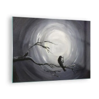 Glastavla - Bild på glas - En korp som sitter på en gren mot bakgrund av en fullmåne - 70x50cm - Nyckeln till nattens hemlighet - Modern väggdekoration för vardagsrum och sovrum ARTTOR
