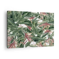 Canvastavla - Bild på duk - Gröna tropiska palmblad på en ljus bakgrund - 70x50cm - Under gröna baldakinen - Modern väggdekoration för vardagsrum och sovrum ARTTOR