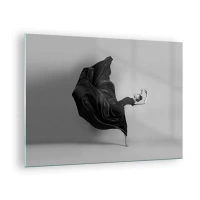 Glastavla - Bild på glas - En dansare i svart klänning svävar dynamiskt i luften - 70x50cm - Bevingad av musiken - Modern väggdekoration för vardagsrum och sovrum ARTTOR
