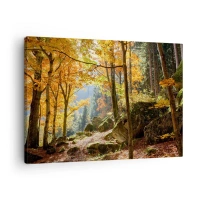 Canvastavla - Bild på duk - En höstskog full av gyllene löv och solljus - 70x50cm - Dags att vila - Modern väggdekoration för vardagsrum och sovrum ARTTOR