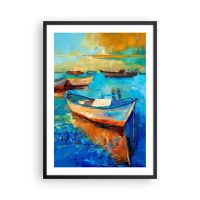Affisch i svart ram - Färgglada båtar på vattnet i impressionistisk stil - 50x70cm - I en sydlig vik - Modern väggdekoration för vardagsrum och sovrum ARTTOR