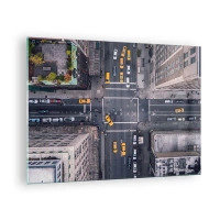 Glastavla - Bild på glas - Flygfoto över en trafikerad korsning i staden - 70x50cm - Enkelt val - Modern väggdekoration för vardagsrum och sovrum ARTTOR